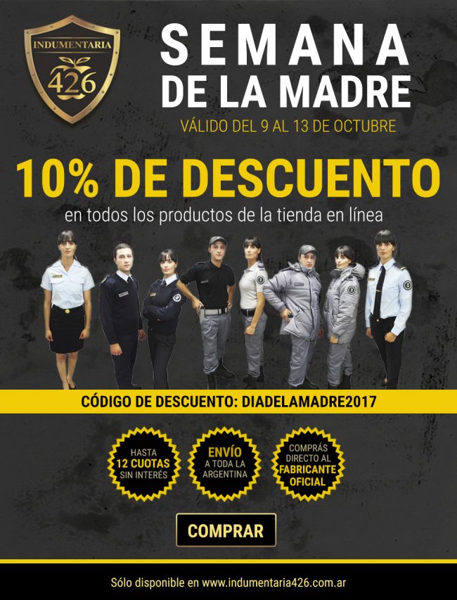 Hasta Viernes 13 de Octubre de 2017 celebramos la Semana de la Madre en Indumentaria 426, con un cupón de descuento del 10% en todos los productos de la tienda en línea.