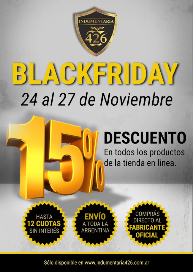 Durante los días 24, 25, 26 y 27 de Noviembre podés comprar todos los productos de nuestra tienda en linea con un 15% descuento.