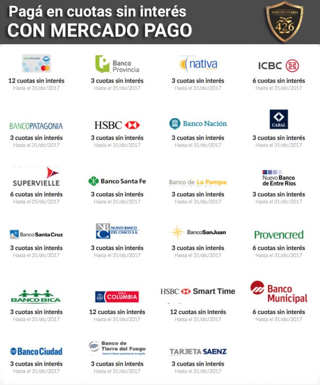 Ahora comprar en Indumentaria 426 es mas fácil y en cuotas sin intereses, con una gran variedad de bancos. Lo único que tenés que hacer es verificar si el tuyo se encuentra en el listado, y respetar la cantidad máxima de cuotas y su vigencia. Realizá tu compra cuanto antes y nosotros despachamos tu pedido…