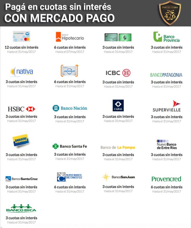 Ahora comprar en Indumentaria 426 es mas fácil y en cuotas sin intereses, con una gran variedad de bancos. Realizá tu compra cuanto antes y nosotros despachamos tu pedido de inmediato!