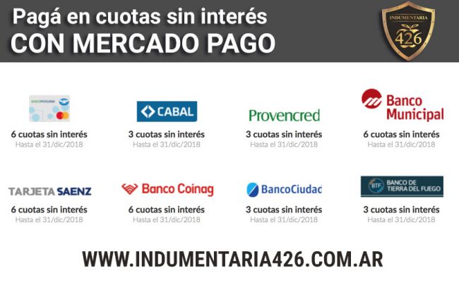 Ahora comprar en Indumentaria 426 es mas fácil y en cuotas sin intereses, con una gran variedad de bancos. Lo único que tenés que hacer es verificar si el tuyo se encuentra en el listado, y respetar la cantidad máxima de cuotas y su vigencia. Realizá tu compra cuanto antes y nosotros despachamos tu pedido…
