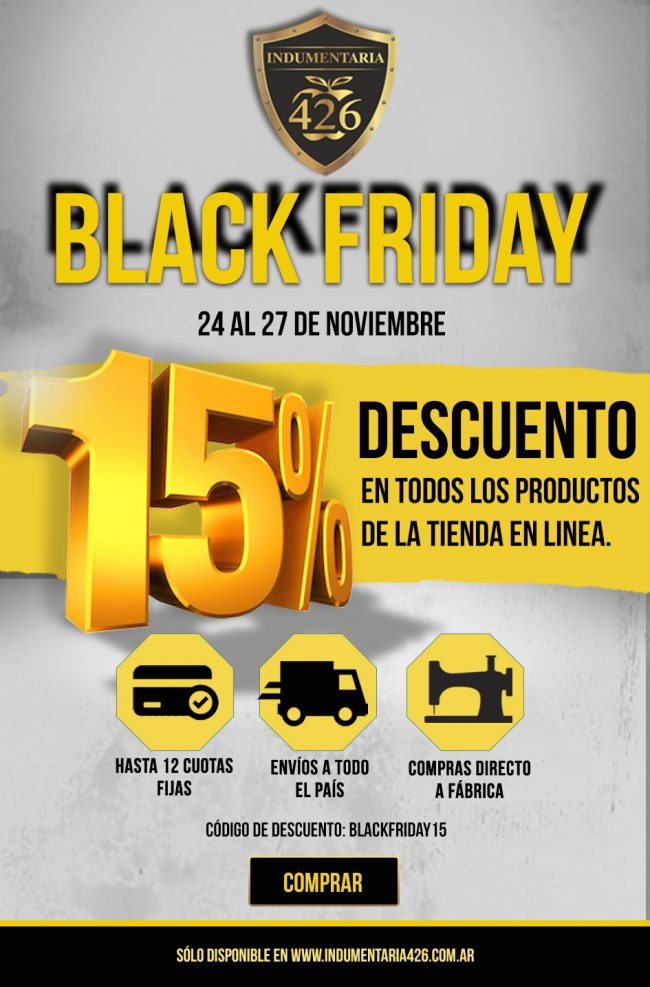 Durante los días 24, 25, 26 y 27 de Noviembre podés comprar todos los productos de nuestra tienda en linea con un 15% descuento.